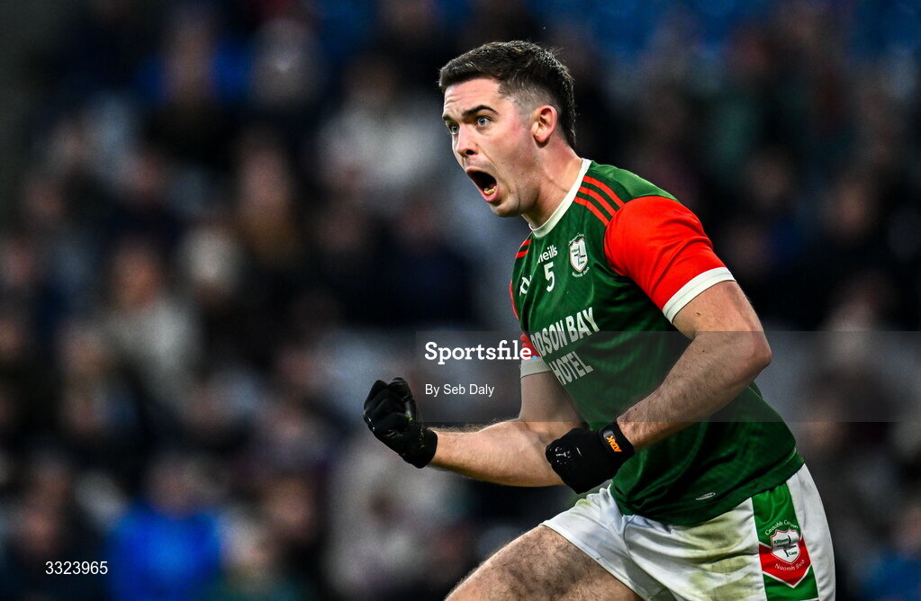 18 January 2026; Ruaidhrí Fallon of St Brigid's celebrates after scoring his side's first goal during the AIB GAA Football Senior Club Championship final match between Dingle of Kerry and St Brigid's of Roscommon at Croke Park in Dublin. Photo by Seb Daly/Sportsfile