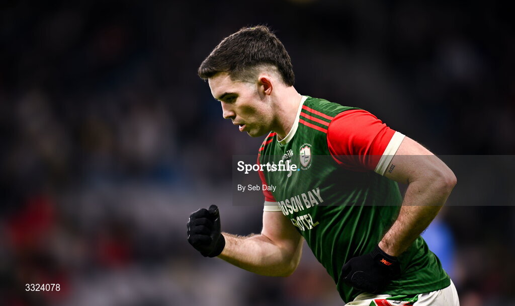 18 January 2026; Ruaidhrí Fallon of St Brigid's celebrates after kicking an equalising two-point score in additional time at the end of the second half during the AIB GAA Football Senior Club Championship final match between Dingle of Kerry and St Brigid's of Roscommon at Croke Park in Dublin. Photo by Seb Daly/Sportsfile