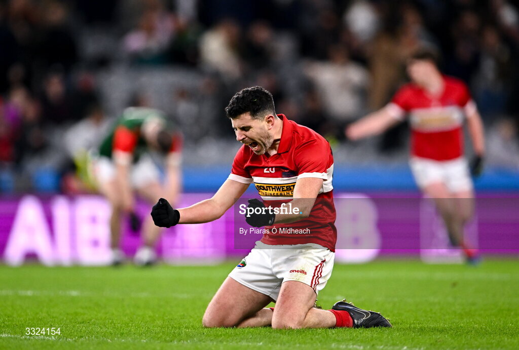 18 January 2026; Mikey Geaney of Dingle celebrates, who scored the winning point in extra-time, celebrates after the AIB GAA Football Senior Club Championship final match between Dingle of Kerry and St Brigid's of Roscommon at Croke Park in Dublin. Photo by Piaras Ó Mídheach/Sportsfile