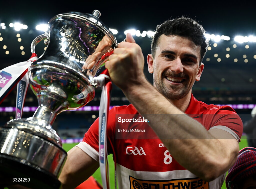 18 January 2026; Mark O'Connor of Dingle with the Andy Merrigan Cup after the AIB GAA Football Senior Club Championship final match between Dingle of Kerry and St Brigid's of Roscommon at Croke Park in Dublin. Photo by Ray McManus/Sportsfile