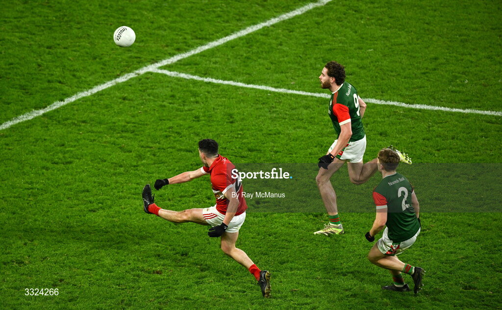 18 January 2026; Pearse Frost and Eddie Nolan of St Brigid's can only watch as Mikey Geaney of Dingle kicks what proved to be the winning kick, a single point, during the AIB GAA Football Senior Club Championship final match between Dingle of Kerry and St Brigid's of Roscommon at Croke Park in Dublin. Photo by Ray McManus/Sportsfile
