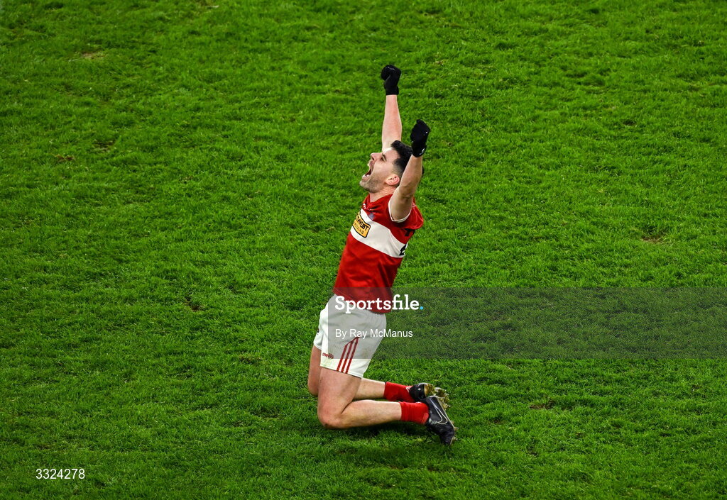 18 January 2026; Mikey Geaney of Dingle, who scored what proved to be the winning point, celebrates at the final whistle during the AIB GAA Football Senior Club Championship final match between Dingle of Kerry and St Brigid's of Roscommon at Croke Park in Dublin. Photo by Ray McManus/Sportsfile