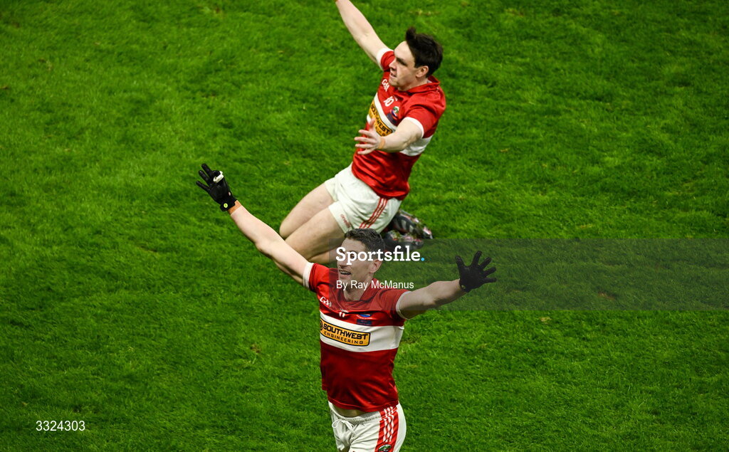18 January 2026; Paul Geaney and Tadhg Browne of Dingle celebrate at the final whistle of the AIB GAA Football Senior Club Championship final match between Dingle of Kerry and St Brigid's of Roscommon at Croke Park in Dublin. Photo by Ray McManus/Sportsfile