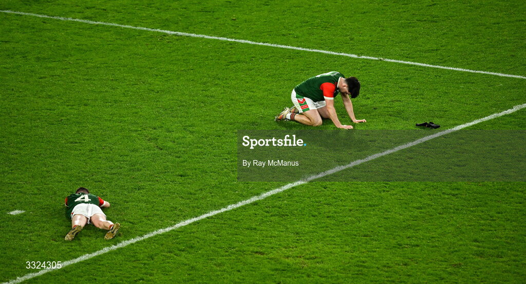 18 January 2026; Robbie Dolan, left, and Seán Trundle of St Brigid's after the AIB GAA Football Senior Club Championship final match between Dingle of Kerry and St Brigid's of Roscommon at Croke Park in Dublin. Photo by Ray McManus/Sportsfile