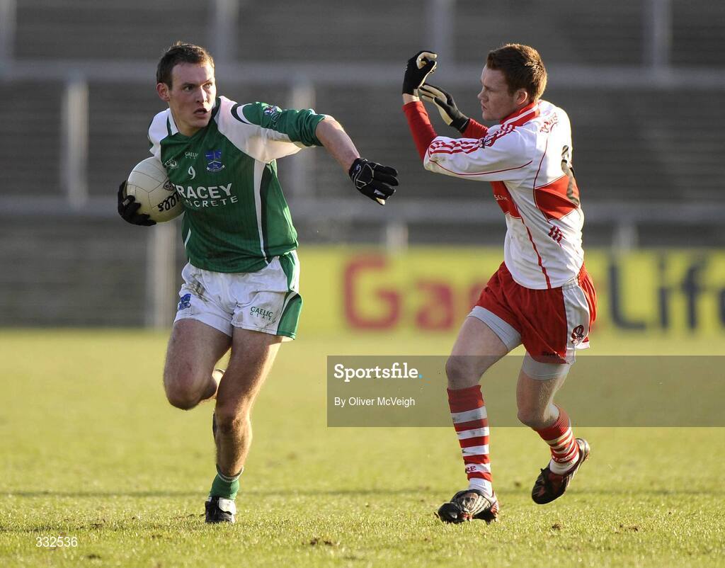 4 January 2009; James Sherry, Fermanagh, in action against Aidan McAlynn, Derry. Gaelic Life Dr. McKenna Cup, Section A, Round 1, Fermanagh v Derry, Brewster Park, Enniskillen, Fermanagh. Picture credit: Oliver McVeigh / SPORTSFILE
