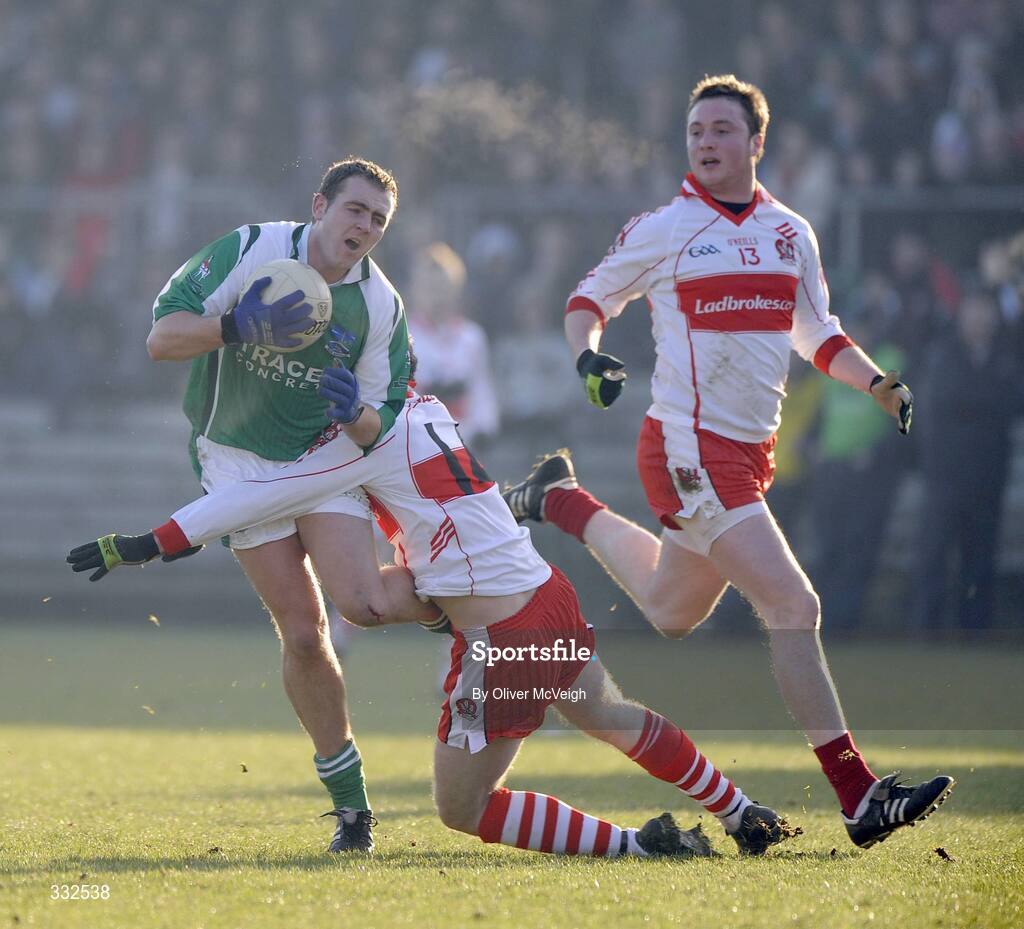 4 January 2009; Ryan Carson, Fermanagh, in action against Niall Bradley, Derry. Gaelic Life Dr. McKenna Cup, Section A, Round 1, Fermanagh v Derry, Brewster Park, Enniskillen, Fermanagh. Picture credit: Oliver McVeigh / SPORTSFILE
