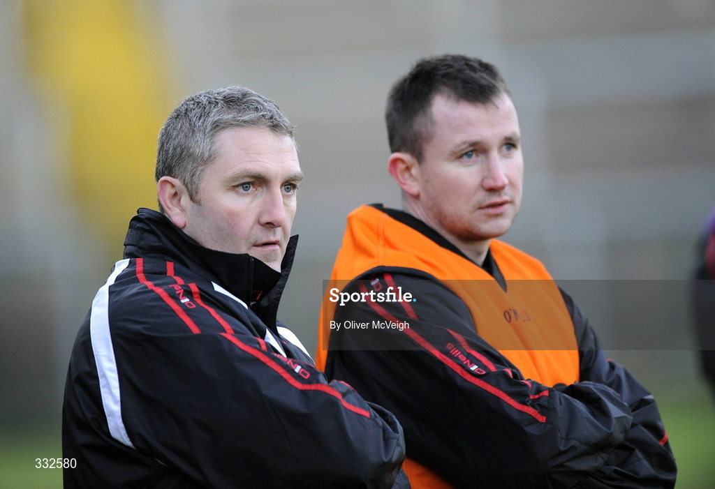 4 January 2009; New Derry manager Damien Cassidy, left, with his assistant Kevin Madden on the sideline. Gaelic Life Dr. McKenna Cup, Section A, Round 1, Fermanagh v Derry, Brewster Park, Enniskillen, Fermanagh. Picture credit: Oliver McVeigh / SPORTSFILE