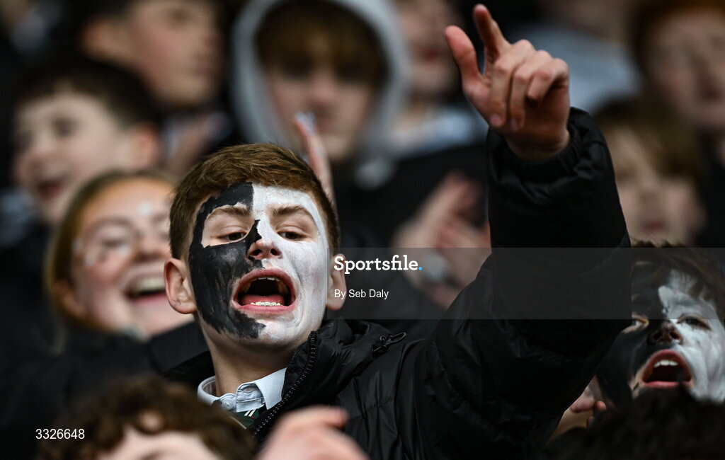23 January 2026; Newbridge College supporters before the Bank of Ireland Leinster Rugby Boys Schools Senior Cup first round match between Newbridge College and Wesley College at Energia Park in Dublin. Photo by Seb Daly/Sportsfile