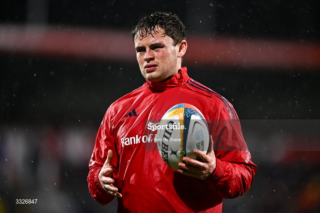 23 January 2026; Tony Butler of Munster before the United Rugby Championship match between Munster and Dragons at Virgin Media Park in Cork. Photo by Ben McShane/Sportsfile