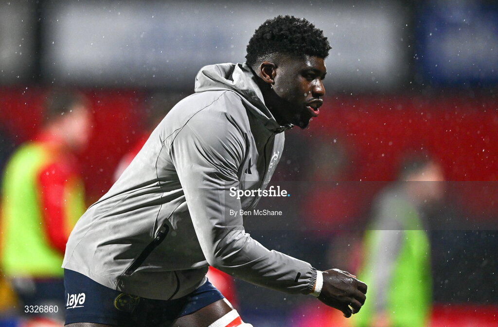 23 January 2026; Sean Edogdo of Munster before the United Rugby Championship match between Munster and Dragons at Virgin Media Park in Cork. Photo by Ben McShane/Sportsfile