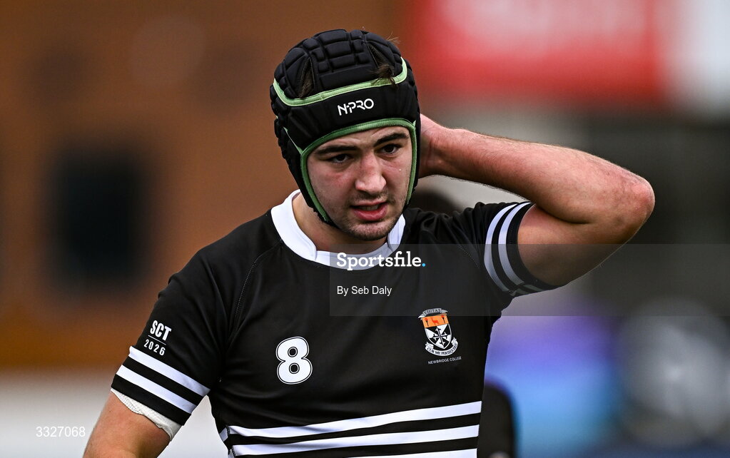 23 January 2026; Saul Brewster of Newbridge College during the Bank of Ireland Leinster Rugby Boys Schools Senior Cup first round match between Newbridge College and Wesley College at Energia Park in Dublin. Photo by Seb Daly/Sportsfile