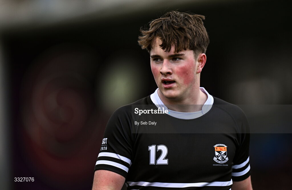 23 January 2026; Tom Martin of Newbridge College during the Bank of Ireland Leinster Rugby Boys Schools Senior Cup first round match between Newbridge College and Wesley College at Energia Park in Dublin. Photo by Seb Daly/Sportsfile