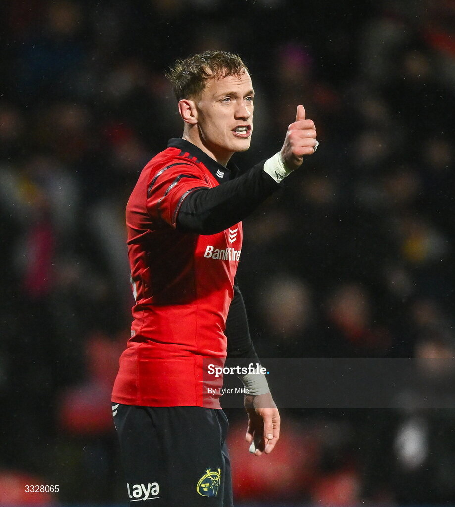 23 January 2026; Mike Haley of Munster during the United Rugby Championship match between Munster and Dragons at Virgin Media Park in Cork. Photo by Tyler Miller/Sportsfile