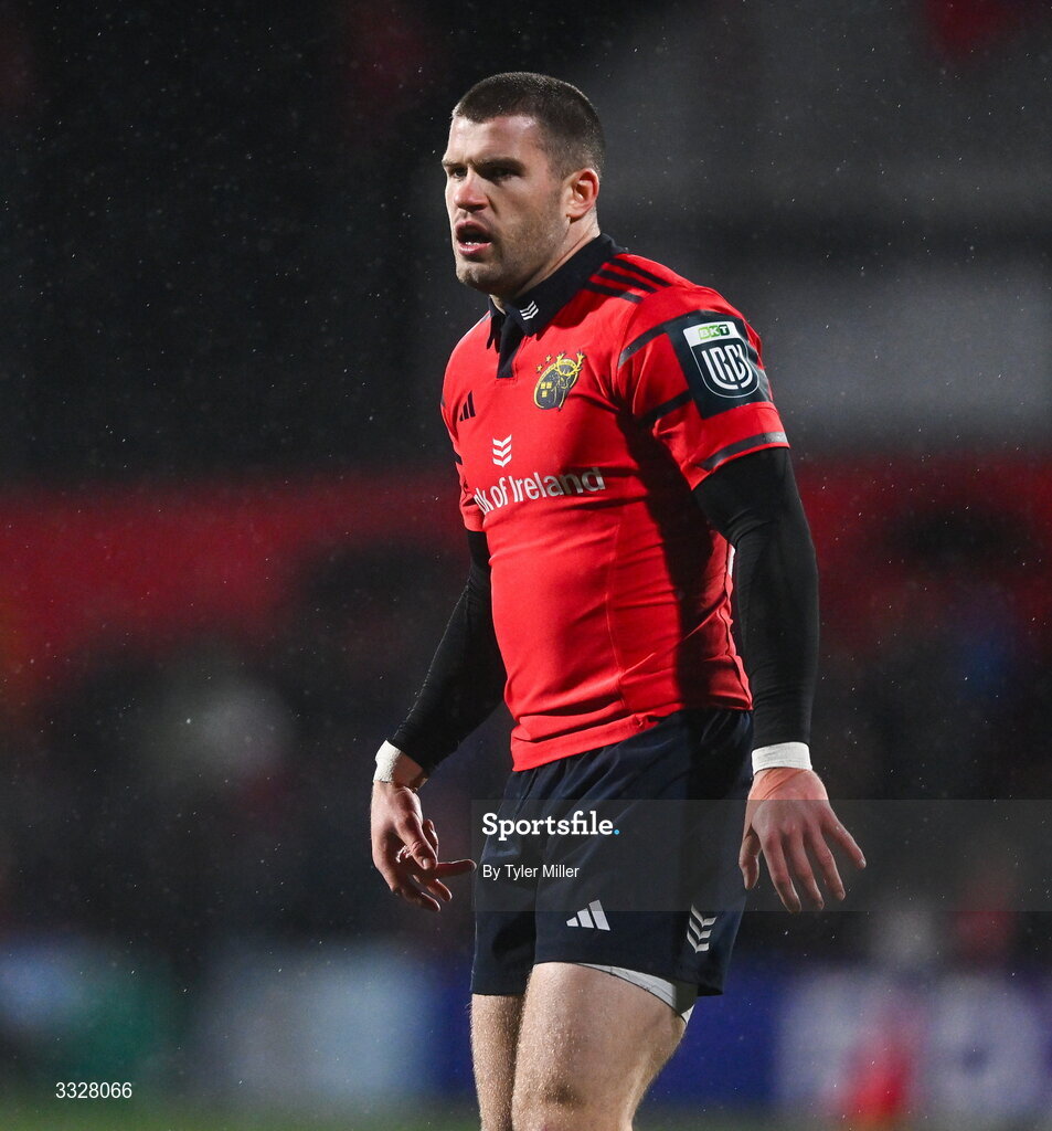 23 January 2026; Diarmuid Kilgallen of Munster during the United Rugby Championship match between Munster and Dragons at Virgin Media Park in Cork. Photo by Tyler Miller/Sportsfile