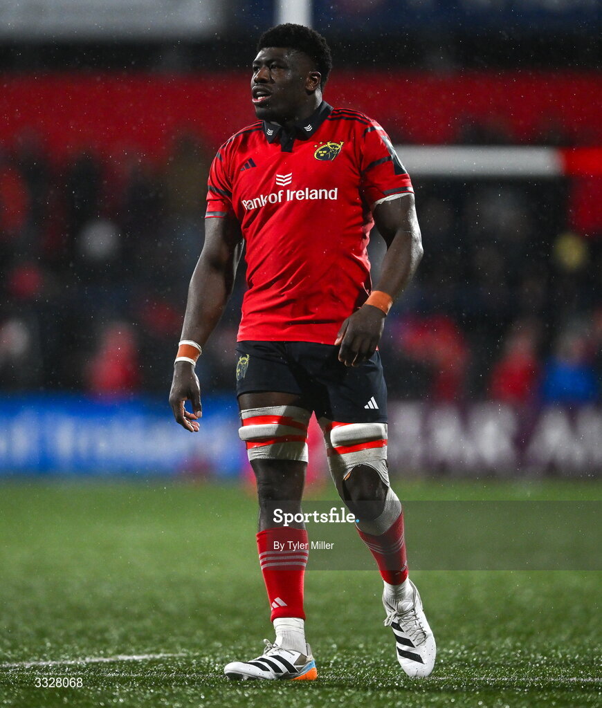 23 January 2026; Sean Edogdo of Munster during the United Rugby Championship match between Munster and Dragons at Virgin Media Park in Cork. Photo by Tyler Miller/Sportsfile