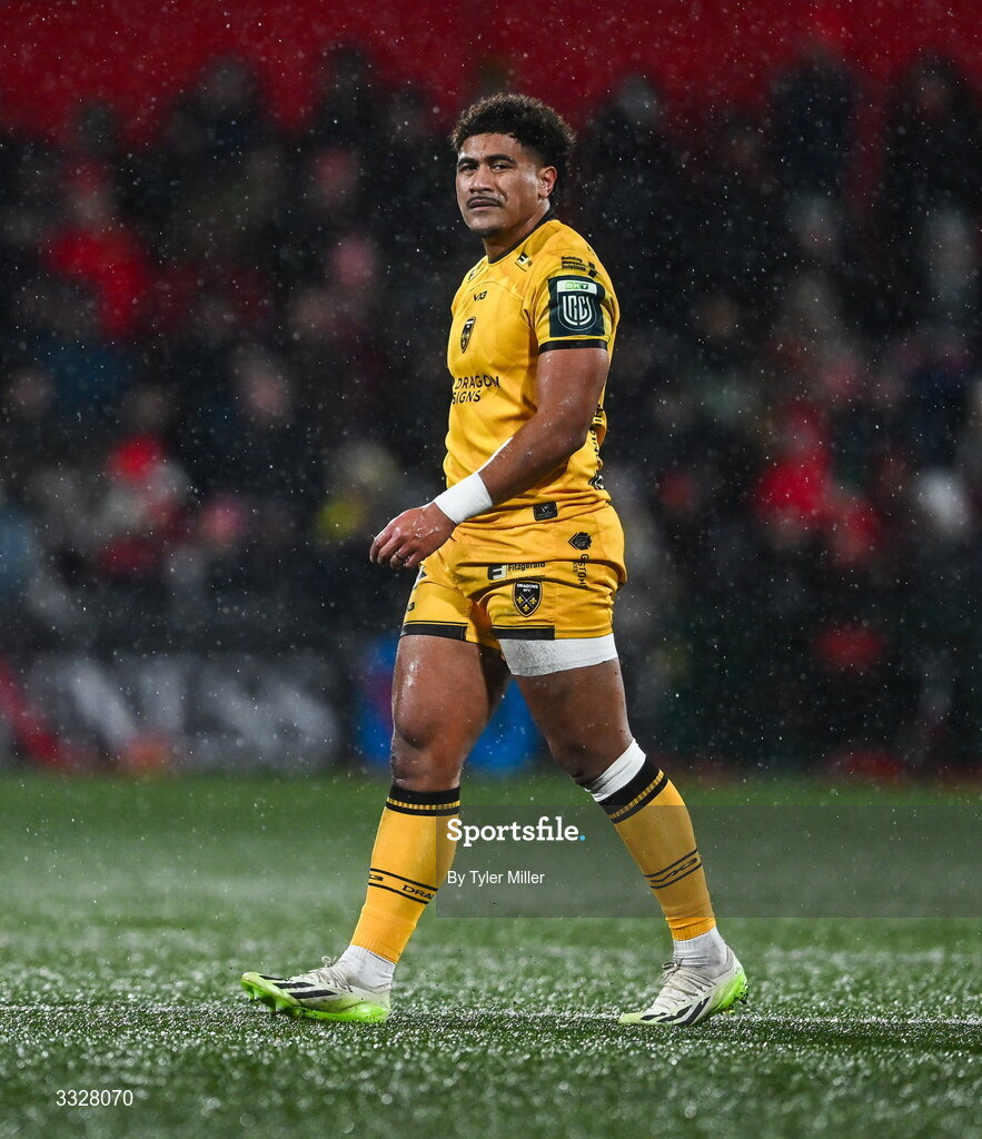 23 January 2026; Fine Inisi of Dragons during the United Rugby Championship match between Munster and Dragons at Virgin Media Park in Cork. Photo by Tyler Miller/Sportsfile