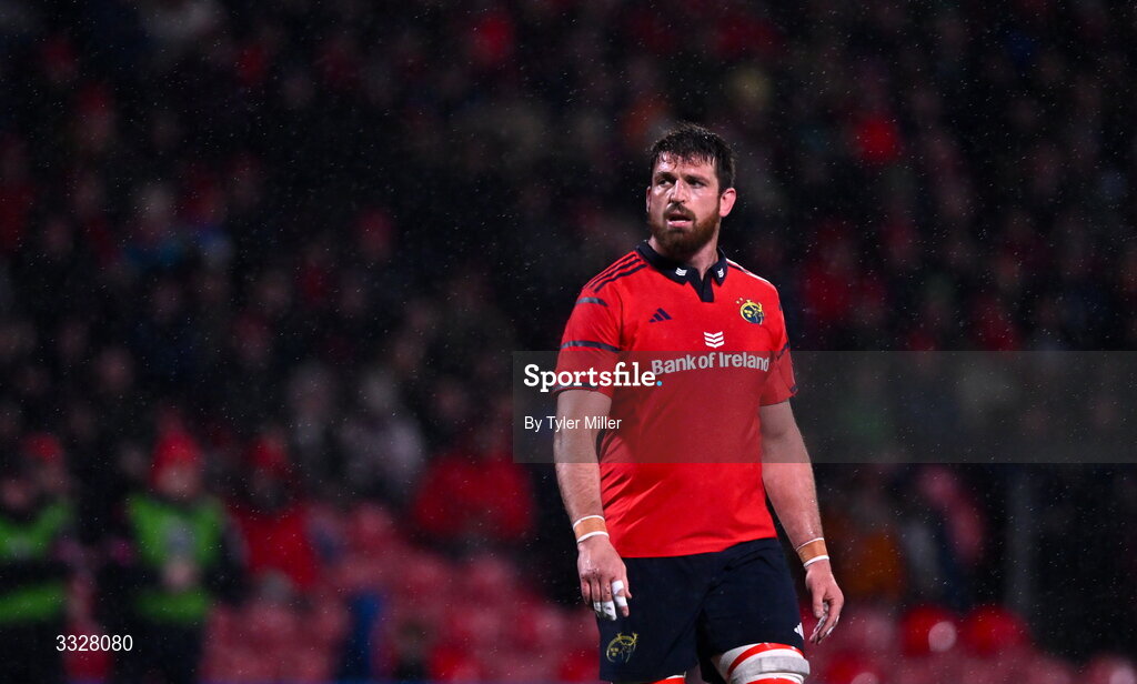 23 January 2026; Jean Kleyn of Munster during the United Rugby Championship match between Munster and Dragons at Virgin Media Park in Cork. Photo by Tyler Miller/Sportsfile