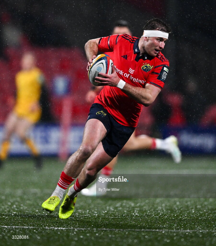 23 January 2026; Shane Daly of Munster during the United Rugby Championship match between Munster and Dragons at Virgin Media Park in Cork. Photo by Tyler Miller/Sportsfile