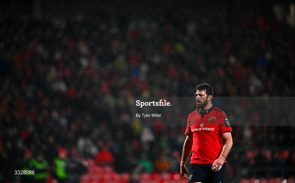 23 January 2026; Jean Kleyn of Munster during the United Rugby Championship match between Munster and Dragons at Virgin Media Park in Cork. Photo by Tyler Miller/Sportsfile