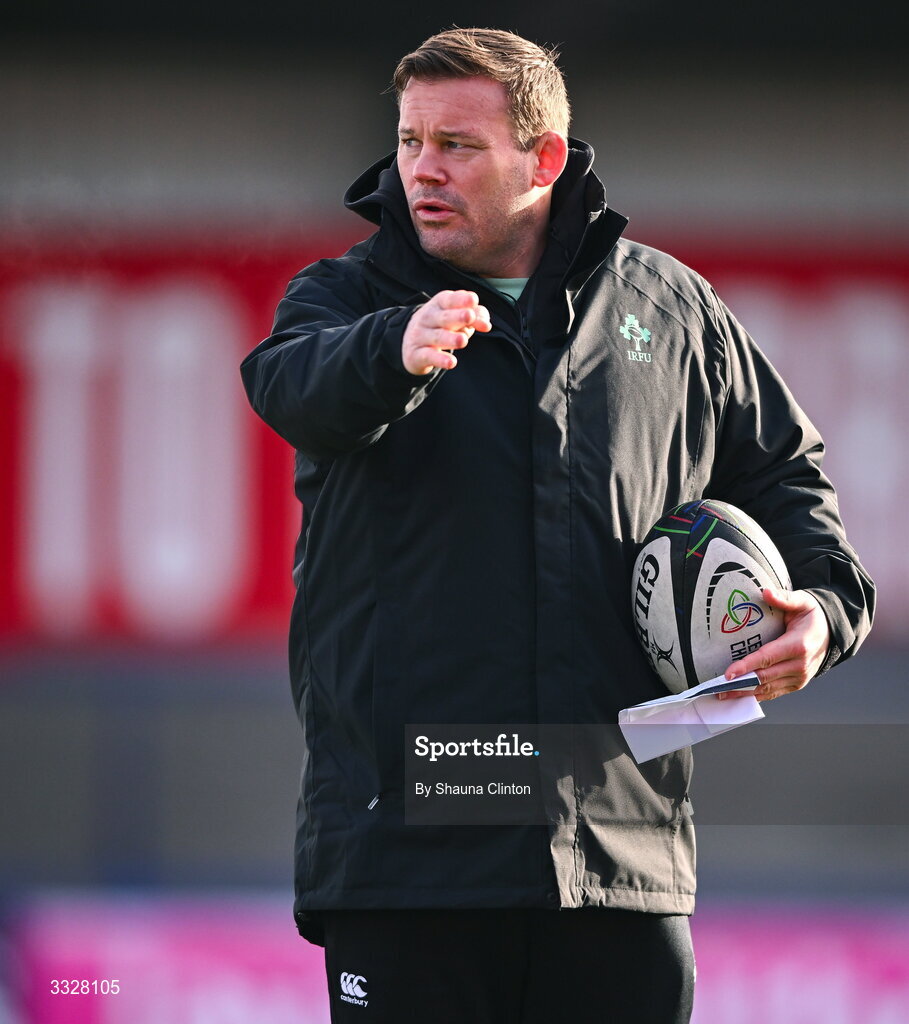 25 January 2026; Clovers head coach Denis Fogarty before the Celtic Challenge Round 5 match between Clovers and Brython Thunder at Virgin Media Park in Cork. Photo by Shauna Clinton/Sportsfile