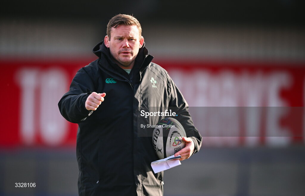 25 January 2026; Clovers head coach Denis Fogarty before the Celtic Challenge Round 5 match between Clovers and Brython Thunder at Virgin Media Park in Cork. Photo by Shauna Clinton/Sportsfile