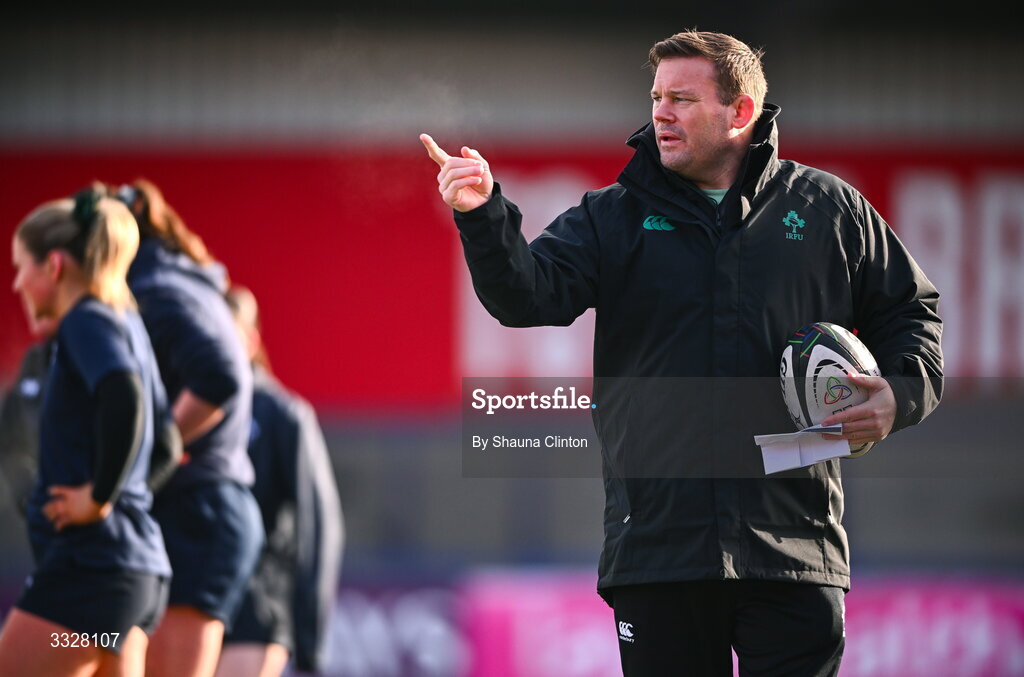 25 January 2026; Clovers head coach Denis Fogarty before the Celtic Challenge Round 5 match between Clovers and Brython Thunder at Virgin Media Park in Cork. Photo by Shauna Clinton/Sportsfile