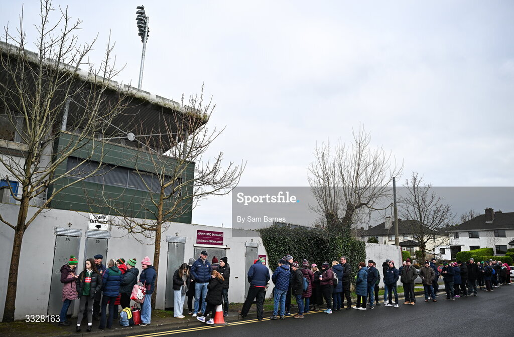 25 January 2026; Supporters wait for the stadium to open before the Allianz Football League Division 1 match between Galway and Mayo at Pearse Stadium in Galway. Photo by Sam Barnes/Sportsfile
