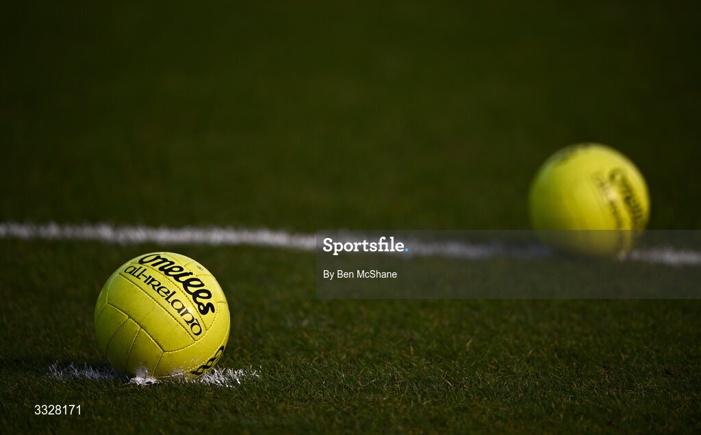 25 January 2026; Hi-vis O'Neills footballs are seen before the Allianz Football League Division 2 match between Cork and Cavan at SuperValu Páirc Uí Chaoimh in Cork. Photo by Ben McShane/Sportsfile