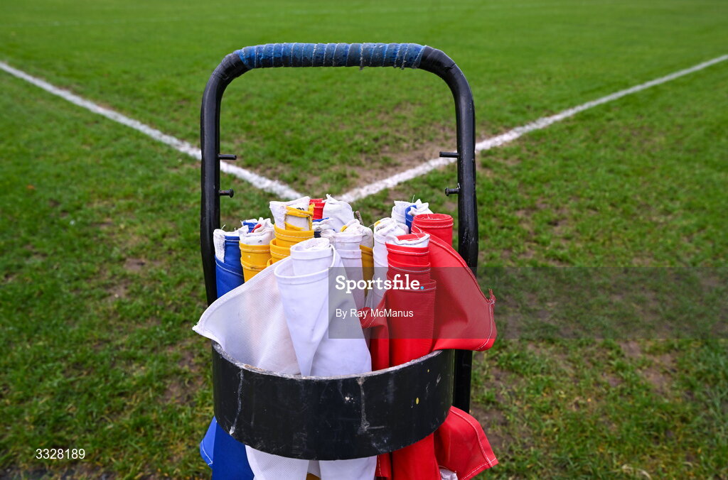 25 January 2026; Sideline flags await placement before the Allianz Hurling League Division 1A match between Kilkenny and Offaly at UPMC Nowlan Park in Kilkenny. Photo by Ray McManus/Sportsfile