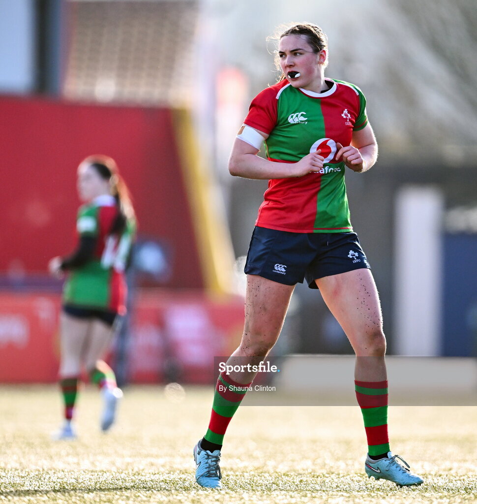 25 January 2026; Niamh Murphy of Clovers during the Celtic Challenge Round 5 match between Clovers and Brython Thunder at Virgin Media Park in Cork. Photo by Shauna Clinton/Sportsfile