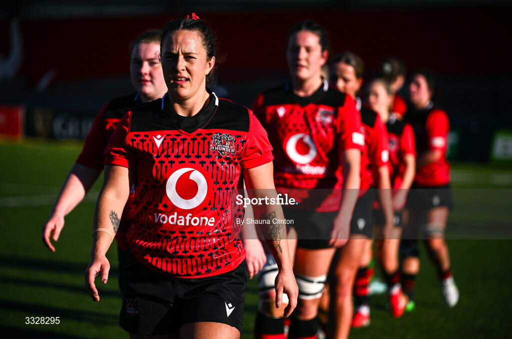 25 January 2026; Brython Thunder players dejected after their side's defeat in the Celtic Challenge Round 5 match between Clovers and Brython Thunder at Virgin Media Park in Cork. Photo by Shauna Clinton/Sportsfile