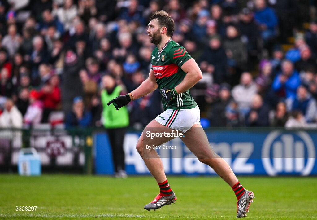 25 January 2026; Aidan O’Shea of Mayo celebrates after scoring his side's first goal during the Allianz Football League Division 1 match between Galway and Mayo at Pearse Stadium in Galway. Photo by Sam Barnes/Sportsfile