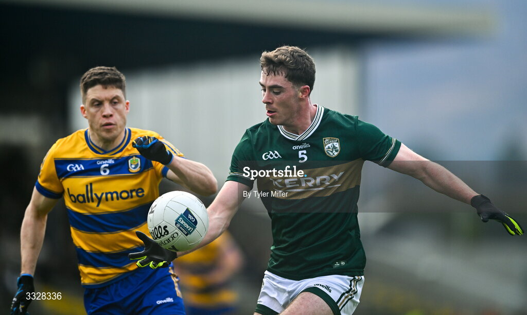 25 January 2026; Armin Heinrich of Kerry in action against Ronan Daly of Roscommon during the Allianz Football League Division 1 match between Kerry and Roscommon at Fitzgerald Stadium in Killarney, Kerry. Photo by Tyler Miller/Sportsfile