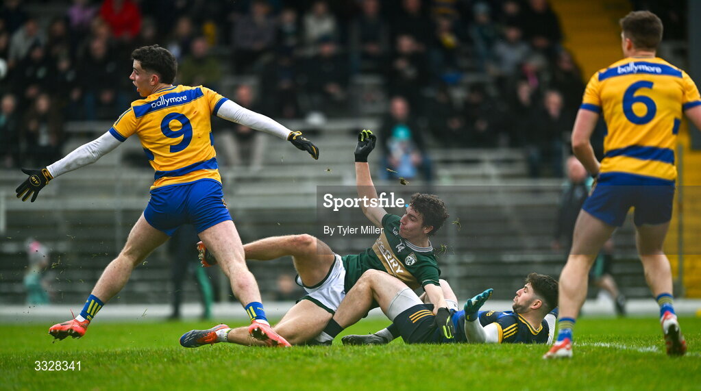 25 January 2026; Tomás Kennedy of Kerry shoots to score his side's first goal during the Allianz Football League Division 1 match between Kerry and Roscommon at Fitzgerald Stadium in Killarney, Kerry. Photo by Tyler Miller/Sportsfile