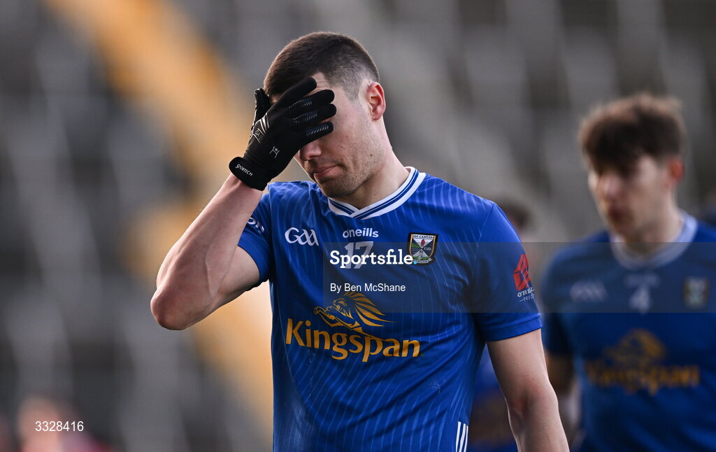 25 January 2026; Tristan Noach-Hofmann of Cavan reacts after his side's defeat in the Allianz Football League Division 2 match between Cork and Cavan at SuperValu Páirc Uí Chaoimh in Cork. Photo by Ben McShane/Sportsfile