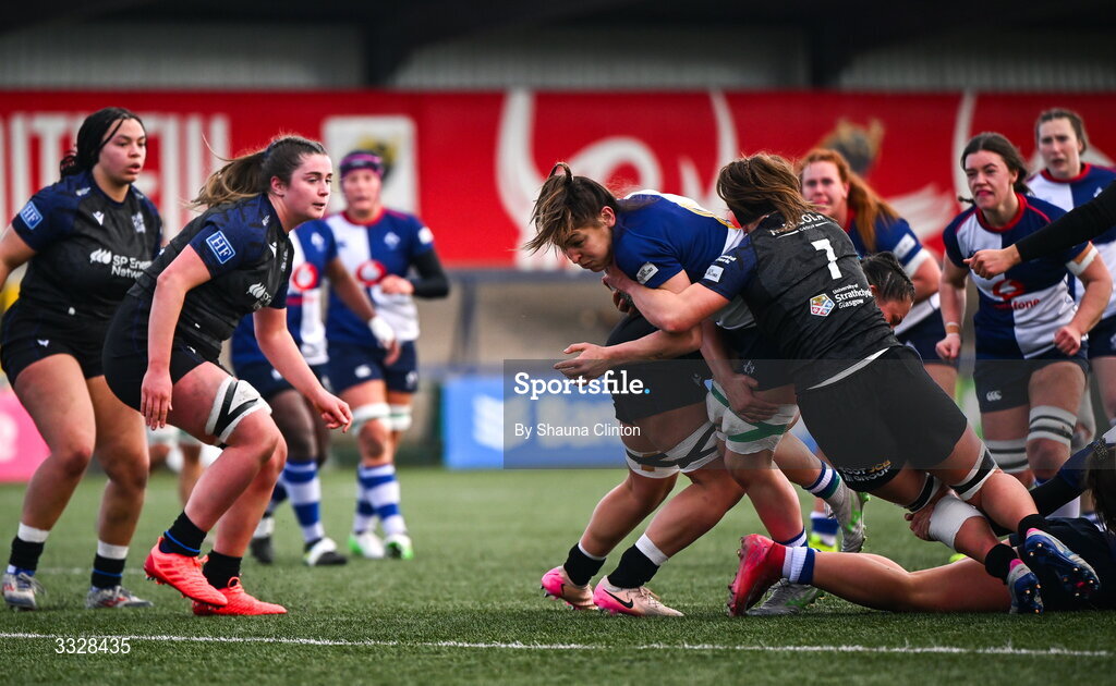 25 January 2026; Erin King of Wolfhounds dives over to score her side's second try during the Celtic Challenge Round 5 match between Wolfhounds and Glasgow Warriors at Virgin Media Park in Cork. Photo by Shauna Clinton/Sportsfile