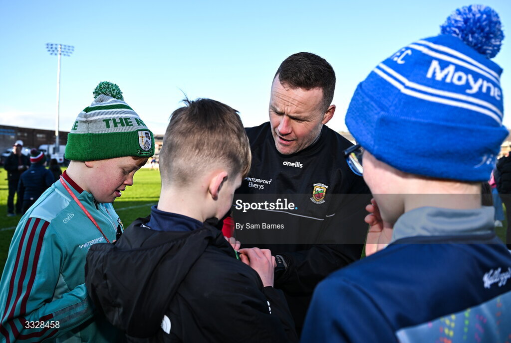 25 January 2026; Mayo manager Andy Moran signs autographs after his side's victory in the Allianz Football League Division 1 match between Galway and Mayo at Pearse Stadium in Galway. Photo by Sam Barnes/Sportsfile