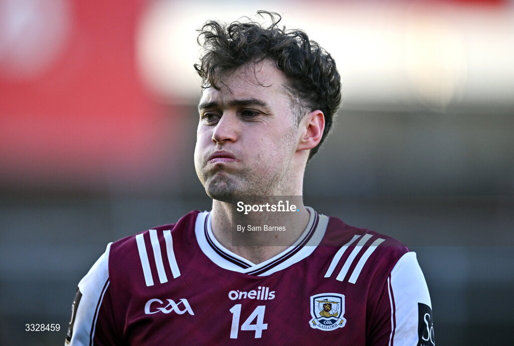 25 January 2026; Robert Finnerty of Galway dejected after his side's defeat in the Allianz Football League Division 1 match between Galway and Mayo at Pearse Stadium in Galway. Photo by Sam Barnes/Sportsfile