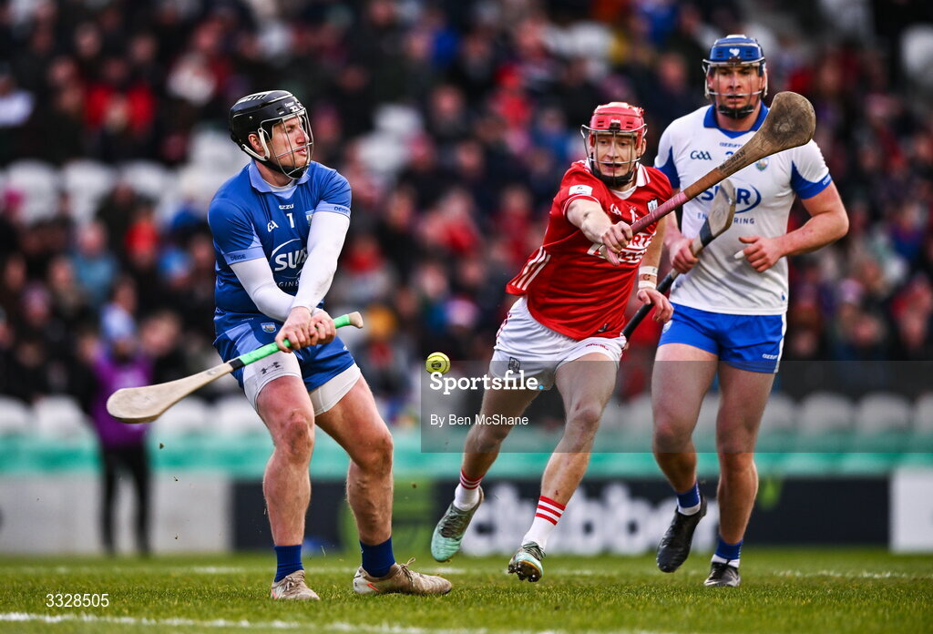 25 January 2026; Waterford goalkeeper Billy Nolan in action against Alan Connolly of Cork during the Allianz Hurling League Division 1A match between Cork and Waterford at SuperValu Páirc Uí Chaoimh in Cork. Photo by Ben McShane/Sportsfile