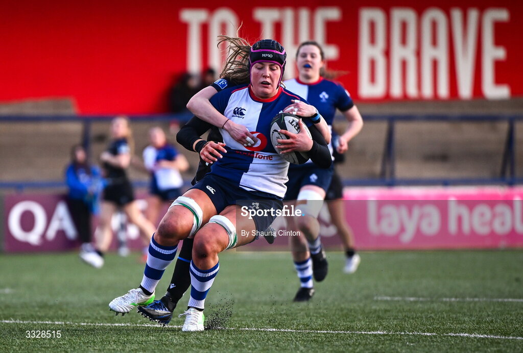 25 January 2026; Fiona Tuite of Wolfhounds scores her side's fifth try during the Celtic Challenge Round 5 match between Wolfhounds and Glasgow Warriors at Virgin Media Park in Cork. Photo by Shauna Clinton/Sportsfile