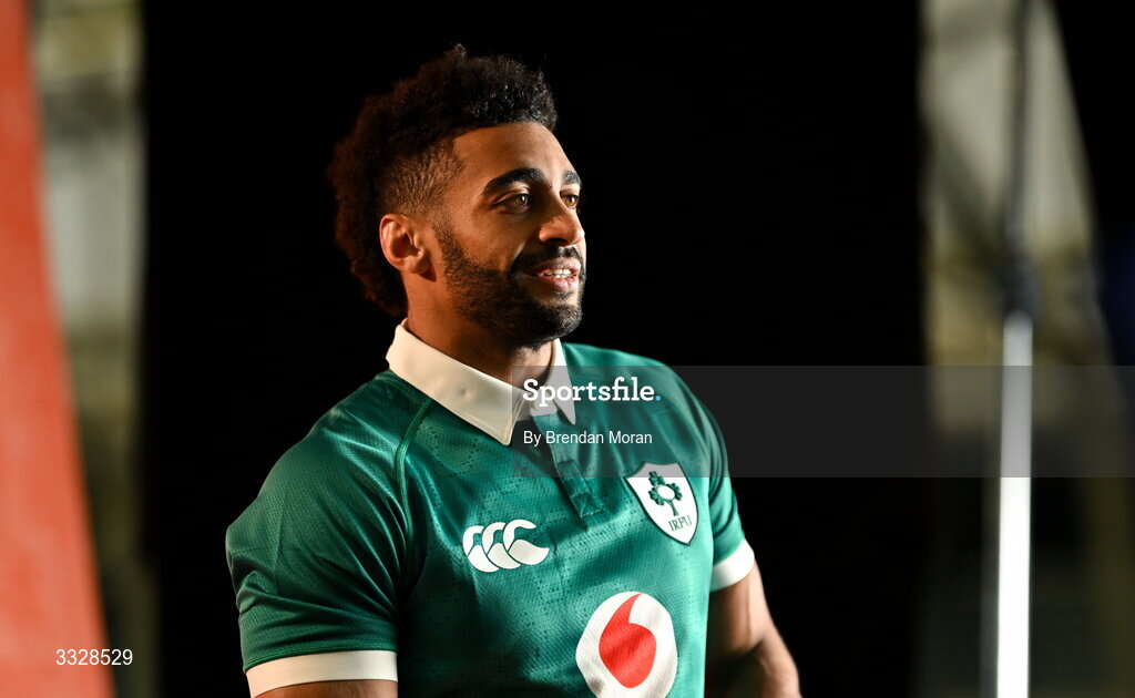 25 January 2026; Robert Baloucoune during the Ireland team assembly day at the IRFU High Performance Centre in Dublin ahead of the 2026 Guinness Six Nations Rugby Championship. Photo by Brendan Moran/Sportsfile