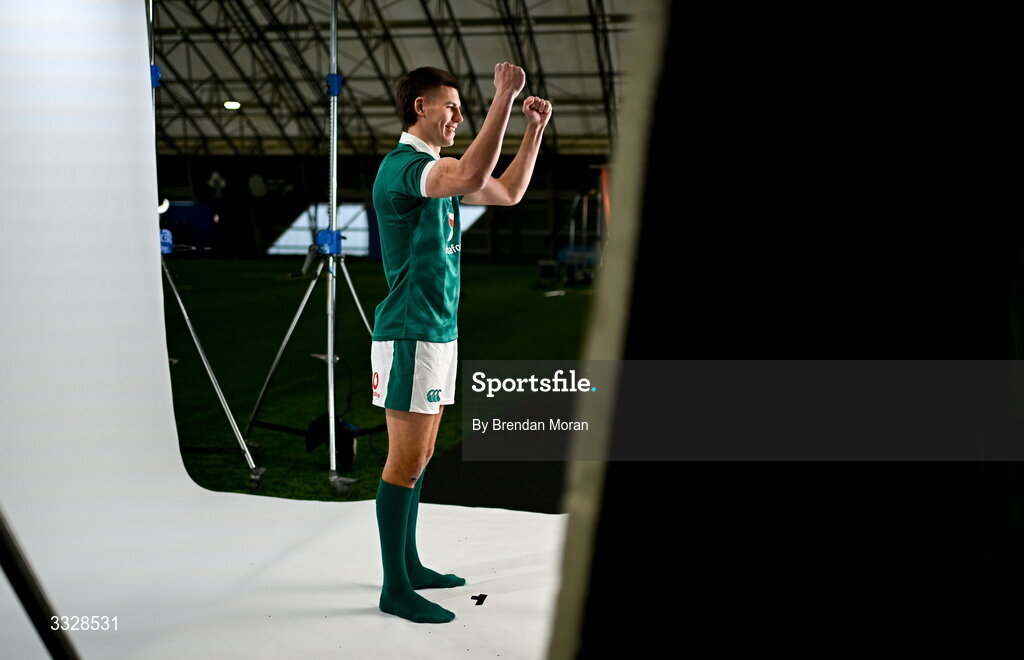 25 January 2026; Sam Prendergast during the Ireland team assembly day at the IRFU High Performance Centre in Dublin ahead of the 2026 Guinness Six Nations Rugby Championship. Photo by Brendan Moran/Sportsfile