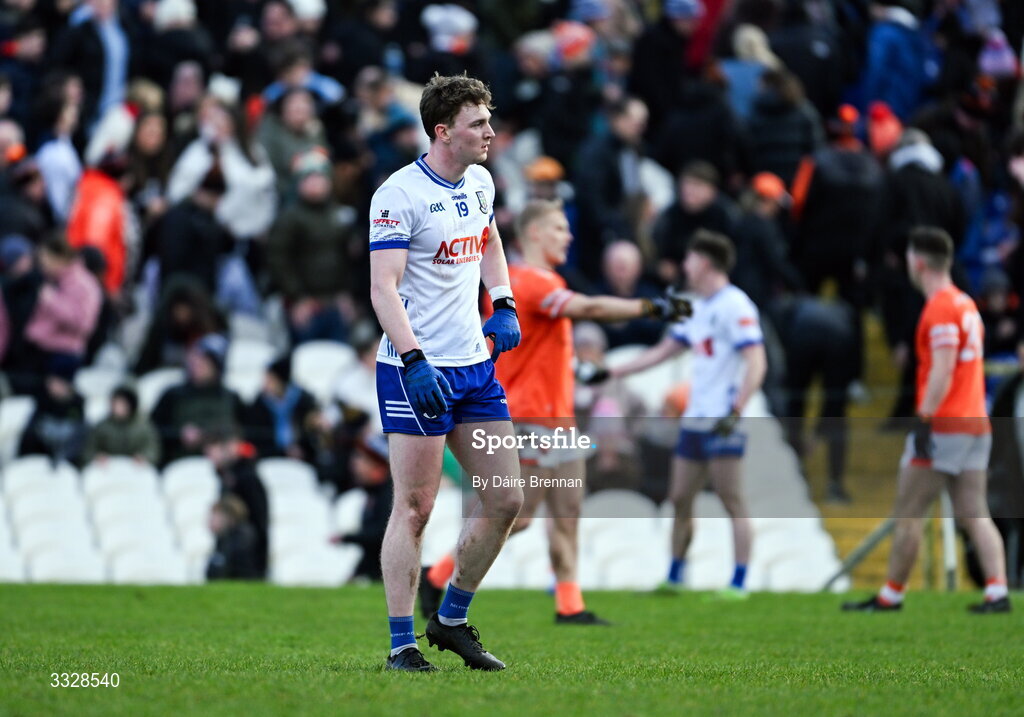 25 January 2026; A dejected Louis Kelly of Monaghan after the Allianz Football League Division 1 match between Monaghan and Armagh at St. Tiernach's Park in Clones, Monaghan. Photo by Daire Brennan/Sportsfile