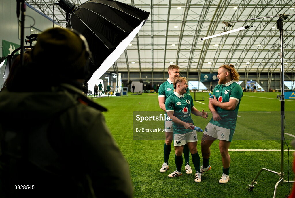 25 January 2026; Garry Ringrose, left, Craig Casey and Finlay Bealham during the Ireland team assembly day at the IRFU High Performance Centre in Dublin ahead of the 2026 Guinness Six Nations Rugby Championship. Photo by Brendan Moran/Sportsfile