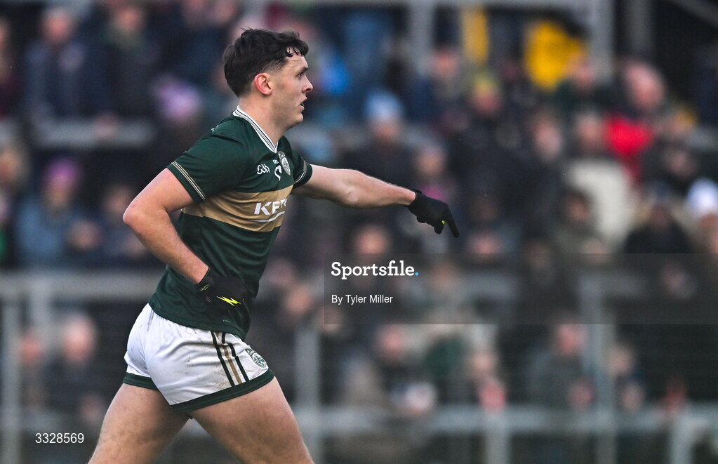 25 January 2026; David Clifford of Kerry celebrates after scoring his side's second goal, a penalty, during the Allianz Football League Division 1 match between Kerry and Roscommon at Fitzgerald Stadium in Killarney, Kerry. Photo by Tyler Miller/Sportsfile