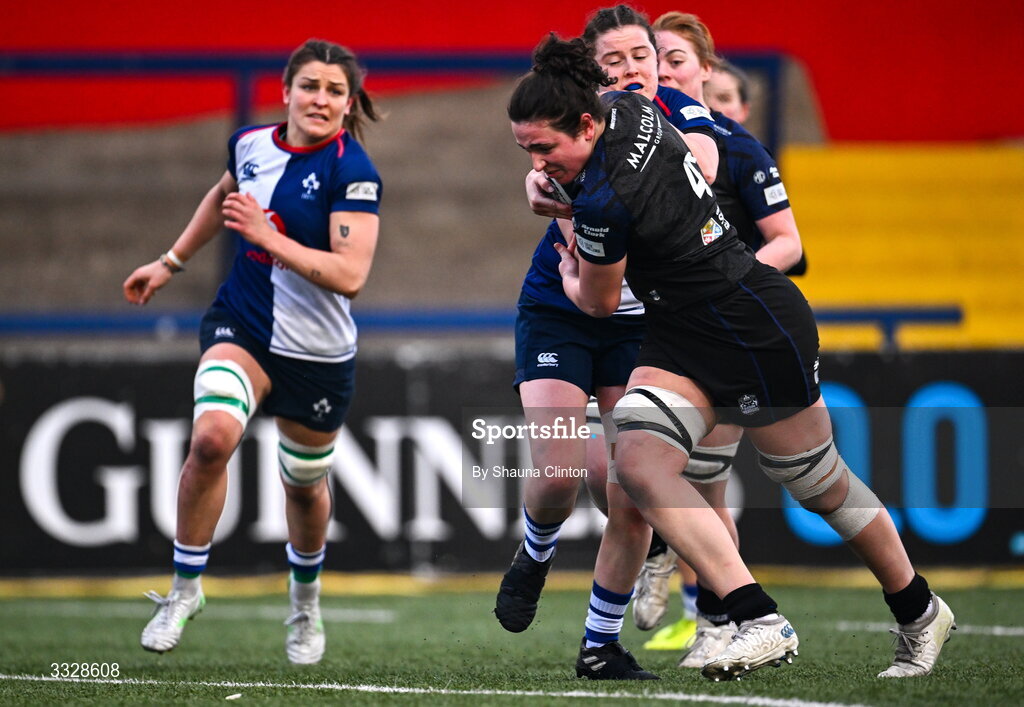 25 January 2026; Holland Bogan of Glasgow Warriors scores her side's first try during the Celtic Challenge Round 5 match between Wolfhounds and Glasgow Warriors at Virgin Media Park in Cork. Photo by Shauna Clinton/Sportsfile