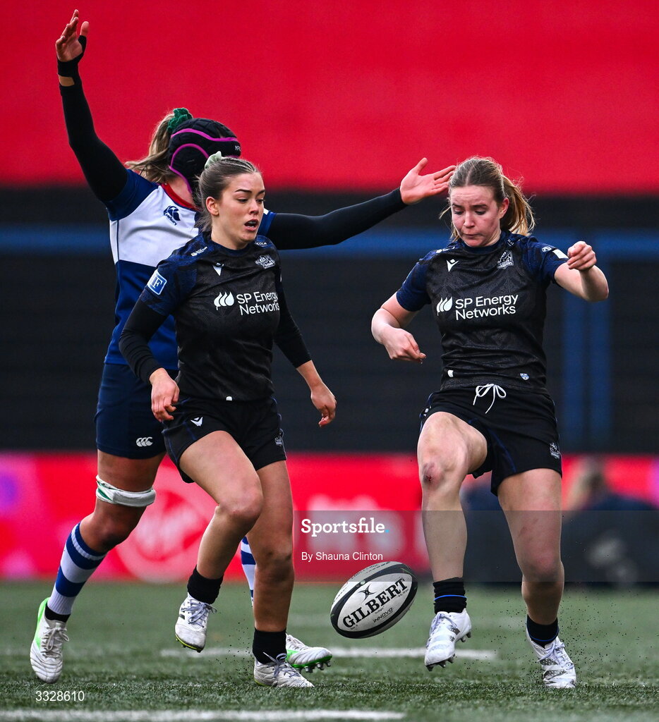 25 January 2026; Robyn Allen of Glasgow Warriors kicks on during the Celtic Challenge Round 5 match between Wolfhounds and Glasgow Warriors at Virgin Media Park in Cork. Photo by Shauna Clinton/Sportsfile