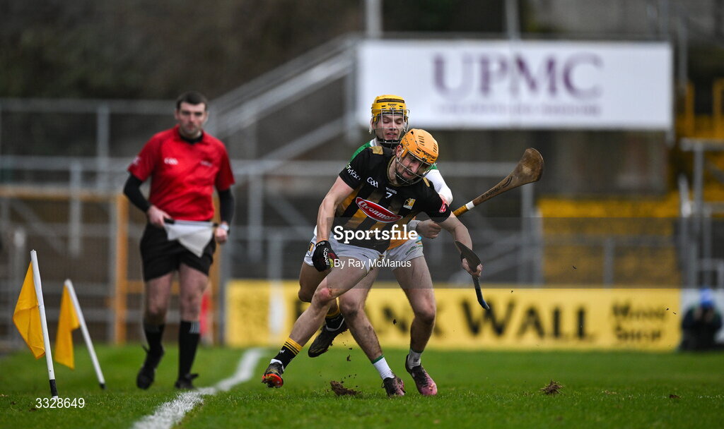 25 January 2026; Shane Murphy of Kilkenny is tackled by Brecon Kavanagh of Offaly during the Allianz Hurling League Division 1A match between Kilkenny and Offaly at UPMC Nowlan Park in Kilkenny. Photo by Ray McManus/Sportsfile