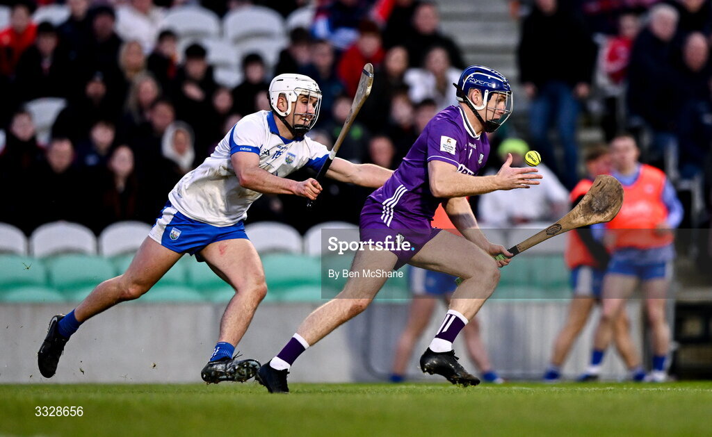 25 January 2026; Cork goalkeeper Patrick Collins in action against Charlie Treen of Waterford during the Allianz Hurling League Division 1A match between Cork and Waterford at SuperValu Páirc Uí Chaoimh in Cork. Photo by Ben McShane/Sportsfile