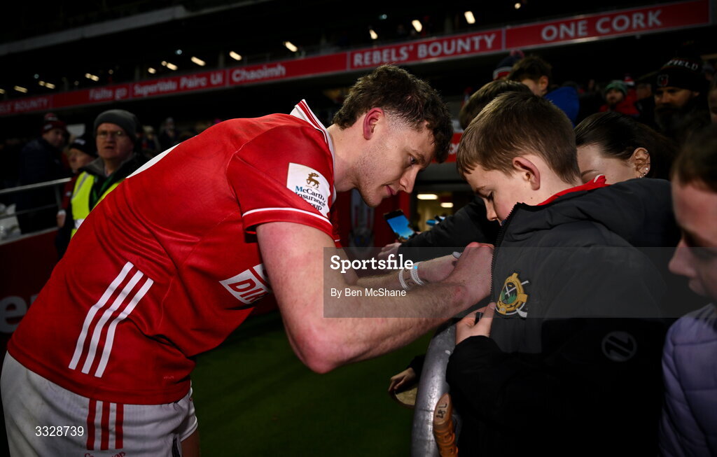 25 January 2026; Alan Connolly of Cork with supporters after the Allianz Hurling League Division 1A match between Cork and Waterford at SuperValu Páirc Uí Chaoimh in Cork. Photo by Ben McShane/Sportsfile